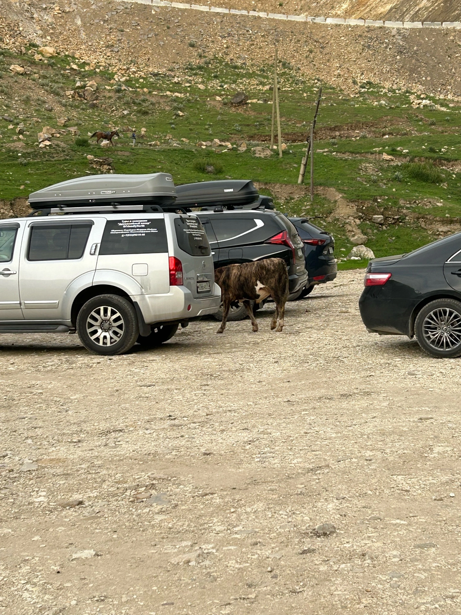 Глядя в окно я видела крутой обрыв в полуметре от машины, отбойников на этой дороге нет, а падать десятки, а может быть и сотня метров. Внизу показались машины и очередная площадка подходящая для устройства ночевки. Запарковались, на территории есть кафе, на площадке мужчина продает сувениры. Солнце начало садиться и туристы спускающиеся с гор стали сворачиваться и уезжать. Послышался свист и по дороге ведущей к аулу призраку понесся вниз табун лошадей. В горах темнеет рано. Ехать по такой дороге к цивилизации в темноте я бы не рискнула, хотя ближе к ночи отсюда уехали все туристы. Местные тоже уехали. Установили палатку на берегу реки. Обычно мы возим две палатки, одна большая и основательная, двухслойная, вторая самораскладывающаяся (2 seconds) В этот раз поставили большую, разожгли плитку и принялись готовить ужин. На стоянке остались собаки и это радовало, не хотелось ночевать с шакалами. Поужинав легли спать. Горная река протекает в трех метрах от палатки и это немно