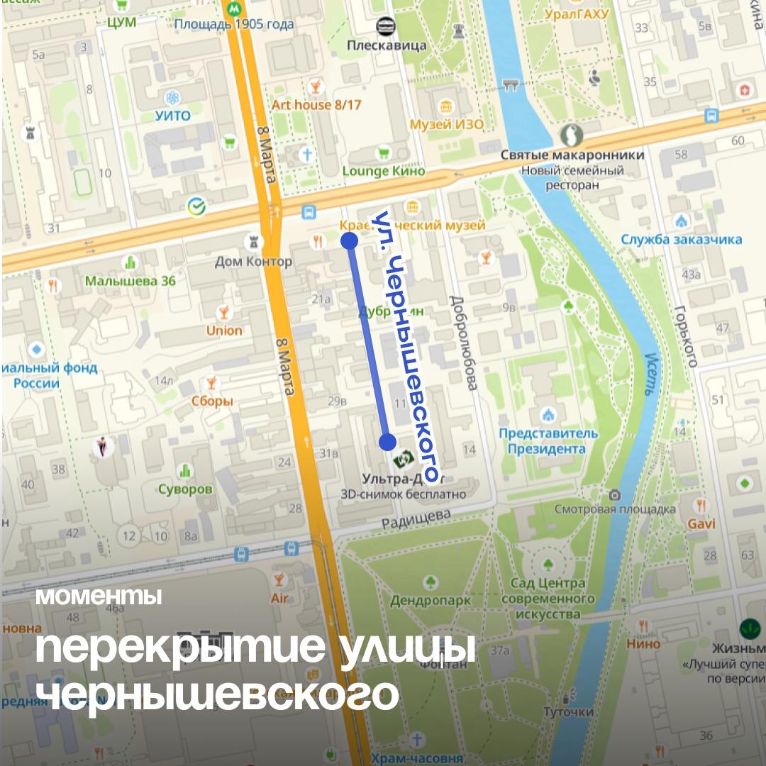 В Екатеринбурге на два месяца перекроют улицу Чернышевского. Так, с 26 мая по 26 июля водителям будет недоступен участок от дома № 7 до здания № 16 «а». Объехать перекрытия можно по улицам 8 Марта – Радищева – Малышева – Добролюбова. Будьте внимательны. Подписаться 🔸 Обсудить