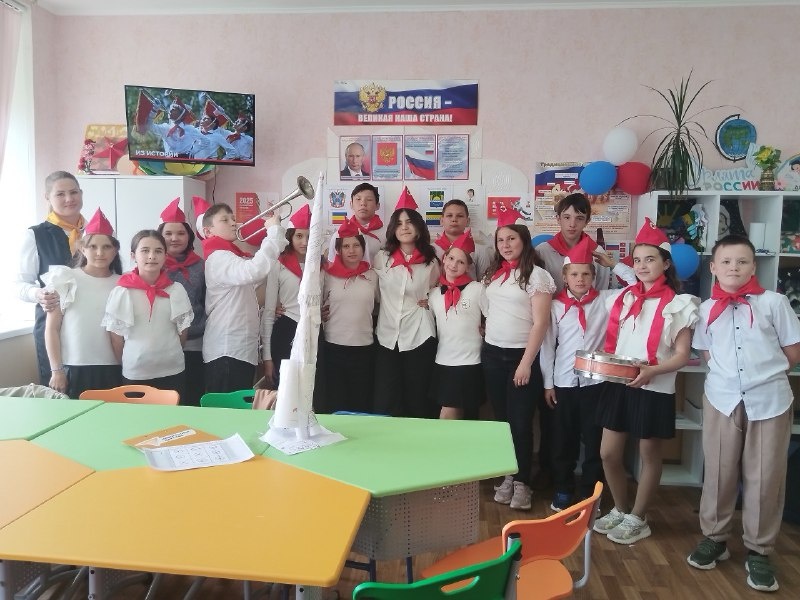 В Семибалковской СОШ советник директора по воспитанию и взаимодействию с детскими общественными объединениями Марина Геннадиевна Иванова провела с обучающимися 5 класса мероприятие «Наследники пионерии».