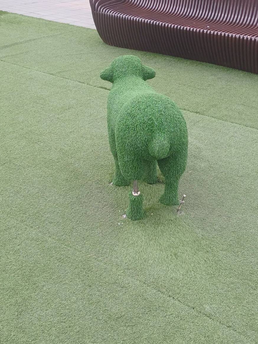 Горожане сломали барашка на сезонной зоне отдыха 🤬 Топиарная фигурка простояла всего три дня. Вчера сотрудники Комбината забрали барашка на ремонт. Его вернут только через неделю.