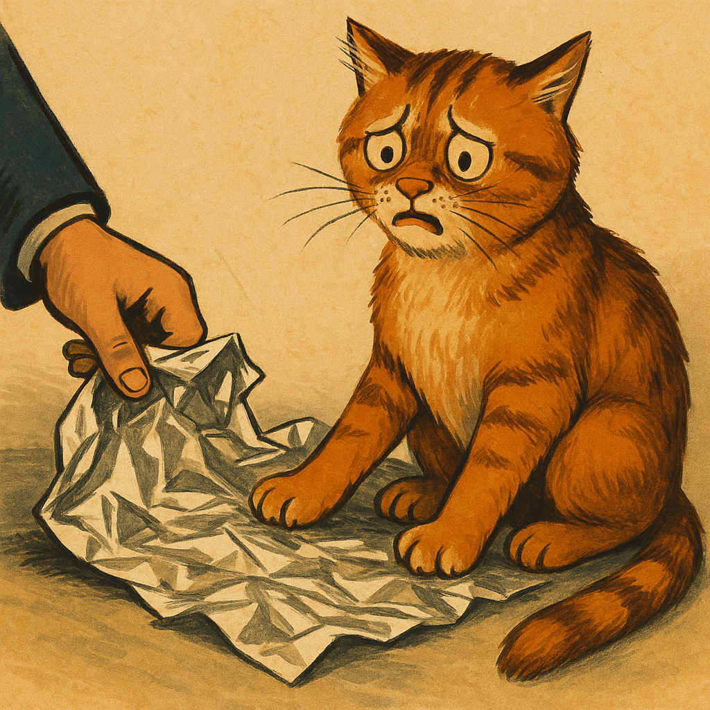 Фольга и Кот: трагедия в одном акте с комментариями Бюро Жалоб Когда уважаемый человек, неся на кухню котлету, аккуратно разворачивает её от фольги, он и не подозревает, что запускает механизм кошачьего ужаса, отточенный веками и передаваемый генетически с поколения в поколение. Фольга — она, как известно, материал блестящий, шуршащий и, по мнению всех домашних котов планеты, глубоко подозрительный. На первый взгляд, пустяк. Но — за этим пустяком скрывается драма, достойная пера Чехова и лапы Марсика. Из протокола Бюро Жалоб Котов, дело №37-ТЖ.