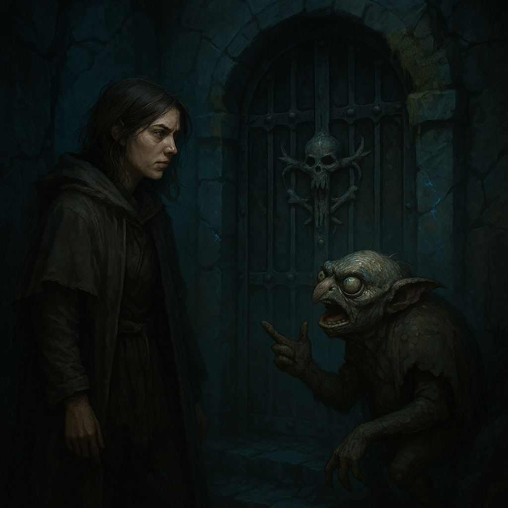 Они нашли спиралевидную лестницу, уходящую вглубь под землю. Камни под ногами были мокрыми, будто плакали. Внизу, в полутёмном зале, их встретил Дух Стража — призрачная фигура в поблекшей мантии, лицо скрыто маской, гладкой, как зеркало.