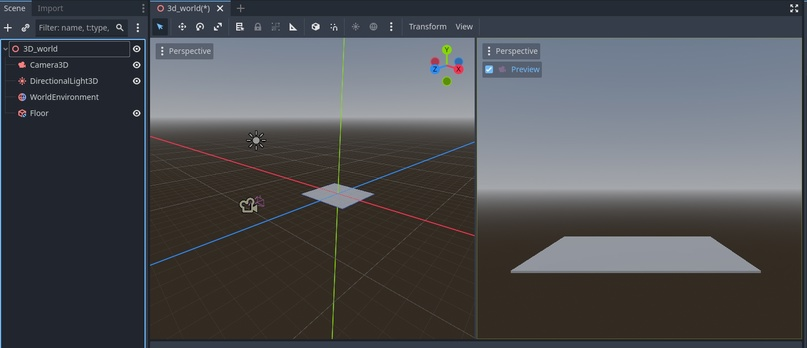 Хоть годо и представляет нам некое подобие базового скрипта для этих целей, я всё же предлагаю собрать его с нуля. Вариантов реализации управления само собой есть огромное количество. В этой статье рассмотрим самый простой и базовый пример. В сцену добавляем в качестве пола CSGbox : В качестве «персонажа» добавляем CharacterBody.