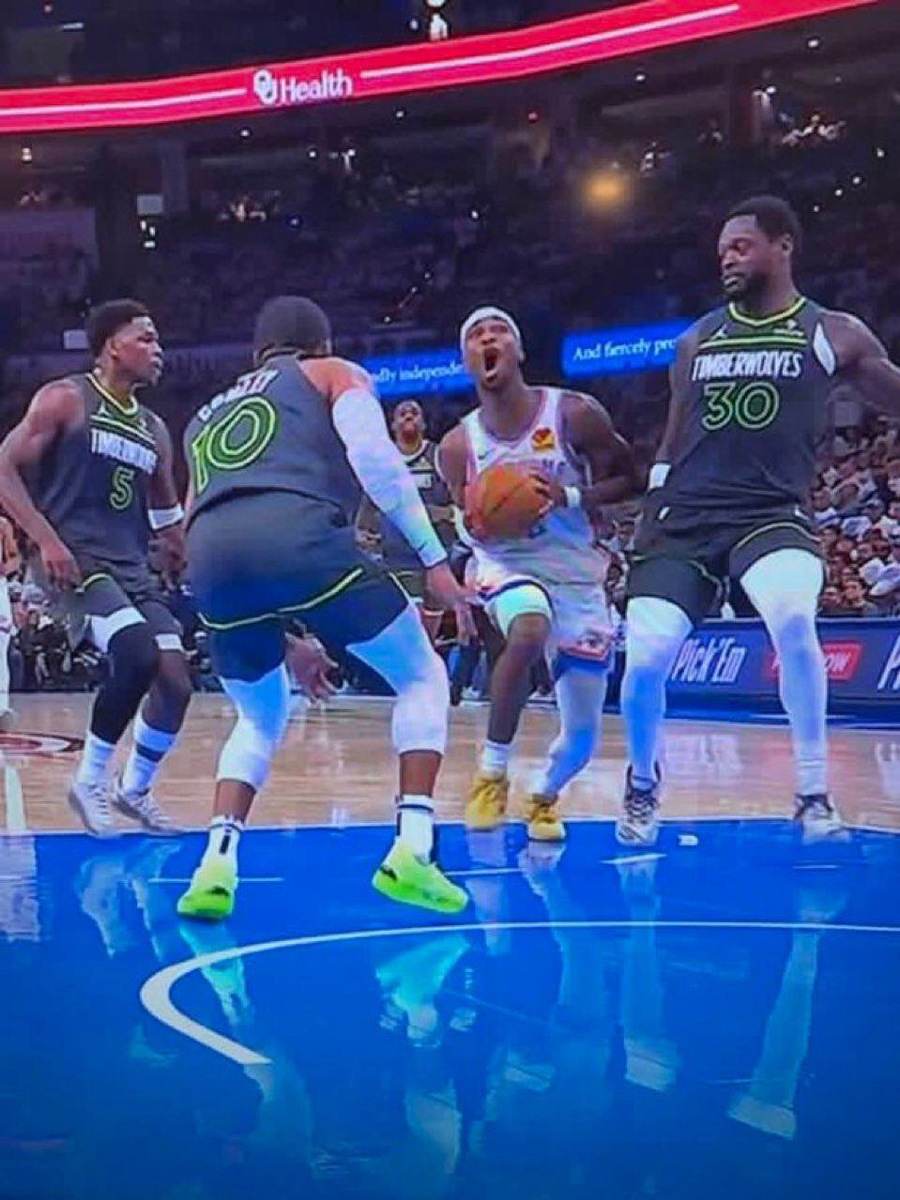 На послематчевой пресс-конференции Энтони Эдвардс обнаружил нечто интересное в протоколе, показал это Джулиусу Рэндлу, и они потом долго хохотали вместе. Довольно легко понять, что именно так развеселило игроков «Миннесоты». В первом матче полуфинала НБА Шэй Гилджес-Александер совершил 27 бросков с игры. Одновременно он умудрился встать на линию 14 раз. «Миннесота» вышла на первый матч подготовленной, но не совсем. Тренерский штаб очевидно много времени уделил разбору игры лидера «Оклахомы» и его трюкам, с помощью которых он зарабатывает нарушения. Гилджес-Александер – второй в лиге по штрафным, но уже в начале игры Дорис Берк напомнила, что во многом по ощущениям он первый: «Не зря в интернете Шэя называют free throw merchant (король штрафных? барыга штрафных?)». Гилджес-Александер – полноправный наследник Джеймса Хардена. Да, он очень быстрый, техничный, пластичный, быстро останавливается, у него классный дриблинг, он обладает хорошими антропометрическими данными, угрожает бросками с