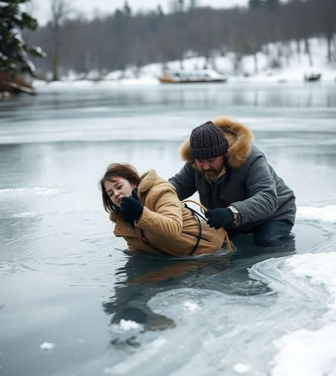 Подбегая к реке, они услышали пронзительный крик. Вероника барахталась в проруби, пытаясь выбраться, но безуспешно. Тимур действовал быстро: он схватил большую палку, спустился на тонкий лед и начал осторожно продвигаться к девушке, протягивая ей импровизированное спасательное средство. Вероника ухватилась за палку изо всех сил, и вскоре Тимур смог вытащить её на относительно безопасный участок. Он быстро снял свою куртку, завернул в неё дрожащую от холода девушку и, поддерживая её на руках, направился к машине скорой помощи, которая ждала неподалёку.