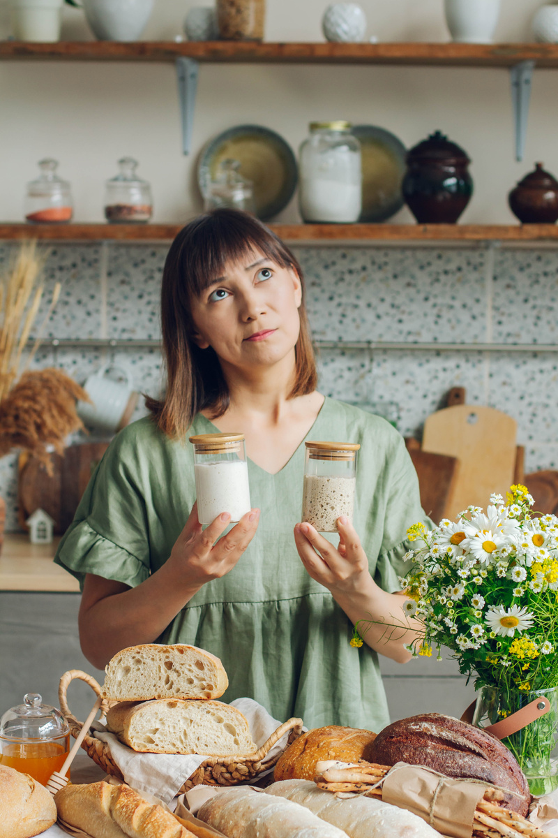Какая лучше? Обязательно ли печь пшеничный хлеб на пшеничной закваске, а ржаной на ржаной?– время от времени задают мне вопросы. Давайте, наконец, расставим все точки над и. 70+70+20=160 (общий вес опары); 160-5=155 (расчет для конкретной ситуации); 155/2=77,5, округлим до 78 из общей массы – по 78 г воды и муки А как насчет кваса? Квас можно ставить на любой закваске из двух, однако вкус его будет отличаться. Так, на ржаной закваске он будет более кислым, но это можно немного нивелировать, поставив его на сухарях из пшеничного хлеба, полностью исключив наличие в нем ржаных сухарей, так как они так же дают квасу более выраженный кисловатый вкус. А на пшеничной закваске вкус кваса получается с мягкой кислинкой, но так же с насыщенным вкусом. Добавить яркости во вкус кваса на пшеничной закваске опять же можно, используя ржаные сухари вместо пшеничных. Надеюсь, теперь вам стало не только легче определиться с выбором закваски, но и появилось больше ясности в вопросе их влияния на вку