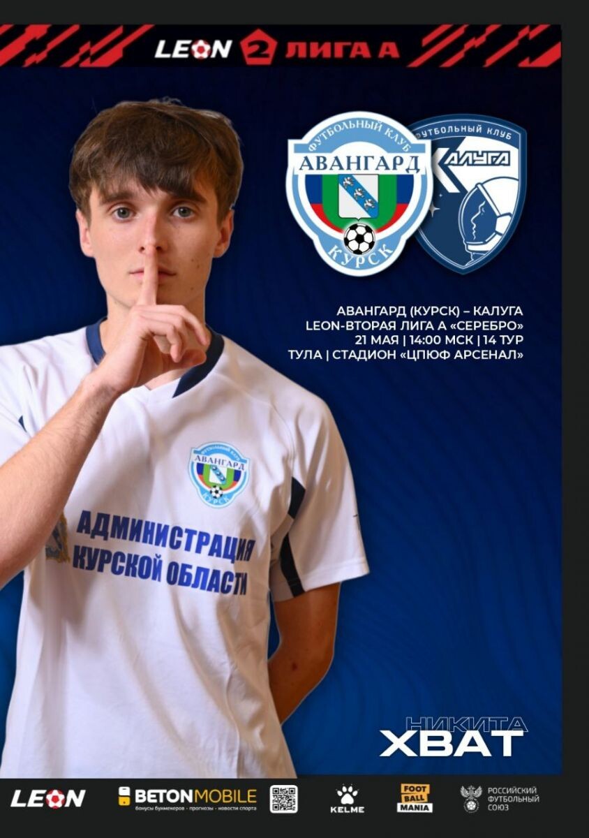 На стадионе «Академии «Арсенала» в Туле начался матч 14-го тура Второй лиги Дивизиона А (группа “Серебро”) между командами “Авангард” (Курск) и “Калуга”. Курский “Авангард” занимает 5-ю строчку турнирной таблицы, “Калуга” - 7-ю, отставая всего на одно очко. Судейская бригада: Главный судья: Матвей Заика (Ростов-на-Дону), Помощники судьи: Егор Марьин (Кострома), Иван Медведев (Новосибирск),