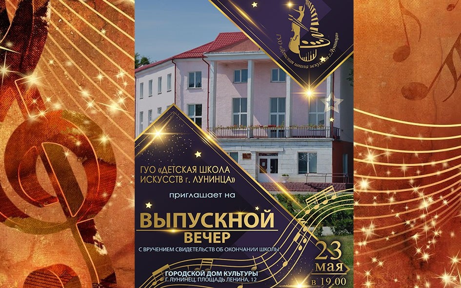 ГУО «Детская школа искусств г. Лунинца» приглашает всех желающих на выпускной вечер, который состоится в городском Доме культуры 23 мая в 19.00.