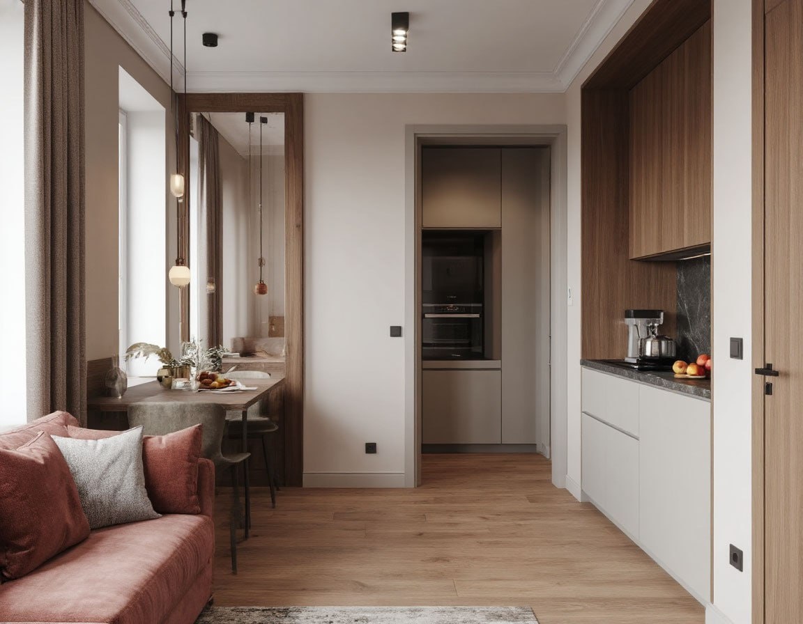 Жизнь в 30 м²: как москвичи создают уют в мини-пространствах В Москве, где каждый квадратный метр на вес золота, даже скромные метражи могут стать комфортным жильем. Истории реальных людей доказывают: грамотная планировка и продуманный дизайн творят чудеса. Алина, дизайнер: "Моя 28-метровая студия у метро — это пример рационального использования пространства. Кровать-трансформер днем превращается в диван, кухонный остров служит обеденным столом, а система хранения встроена в ниши стен. Главный секрет — вертикальное зонирование." Максим, IT-специалист: "Живу в бывшем общежитии — 32 м² с совмещенным санузлом. Спасение — складная мебель и smart-техника: варочная панель на две конфорки, стиралка под раковиной. Самое неожиданное: узкий балкон 1,5 м² стал моим кабинетом — утеплил и поставил откидной стол." Особенности жизни в мини-формате: Хранение — от пола до потолка: магнитные панели, крючки за дверями, выдвижные ящики под кроватью Свет — многоуровневое освещение визуально "размывае