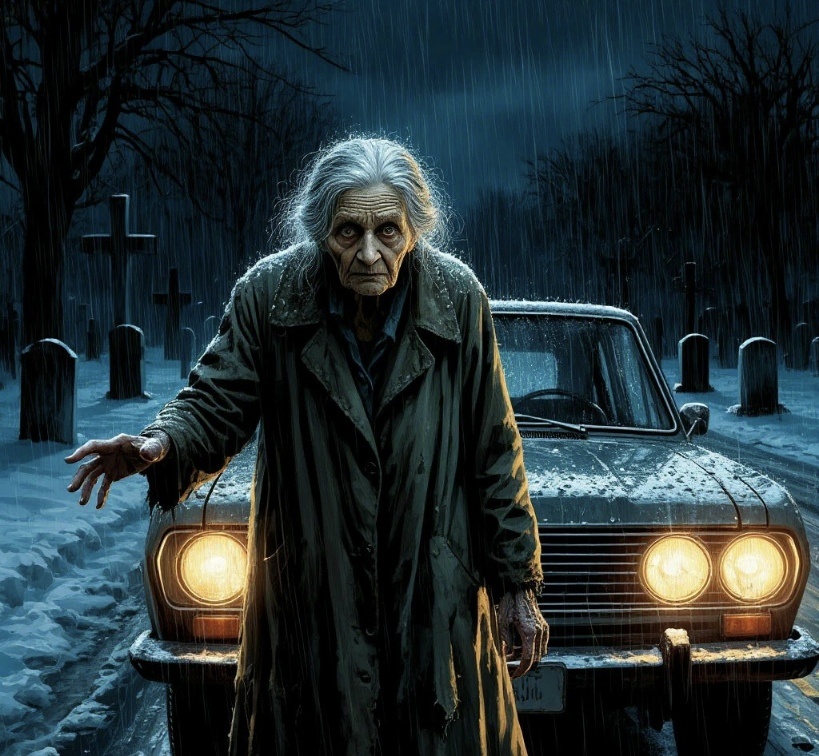 Я приехал. Сделал укол. Подождал. Выслушал. Посоветовал. Еще выслушал. Слава богу, давление у старушки стабилизировалось. Поехал к родителям в деревню, это всего тридцать километров от Залесья. Дорога темная, далеко не видно, да еще дождь заливает лобовое стекло... Проезжая мимо кладбища, я увидел одинокую фигуру на краю дороги. Внезапно она словно из-под земли появилась прямо перед машиной. Еле успел притормозить. Чертыхаясь, выскочил. Передо мной стояла седая старуха. «Интересно, что можно здесь делать, ночью да еще в такую погоду?» —пронеслось в голове.