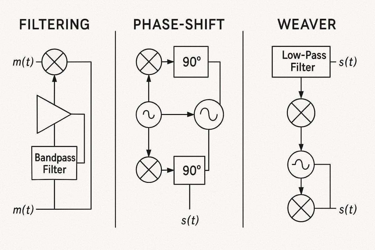 Сравнение методов генерации SSB: фильтрация, фазовый сдвиг и метод Уивера
