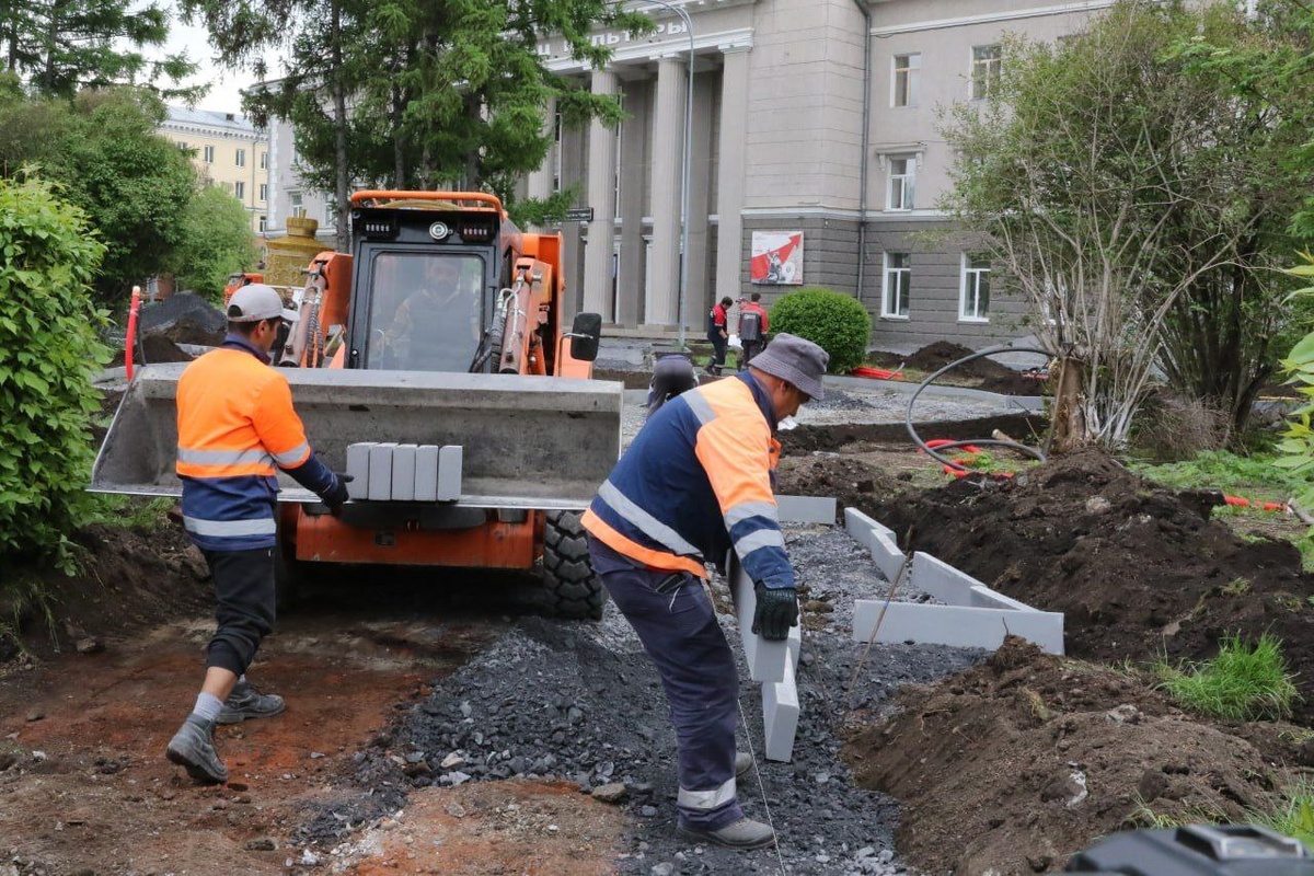 В сквере у Дворца культуры имени 50-летия Октября продолжается благоустройство