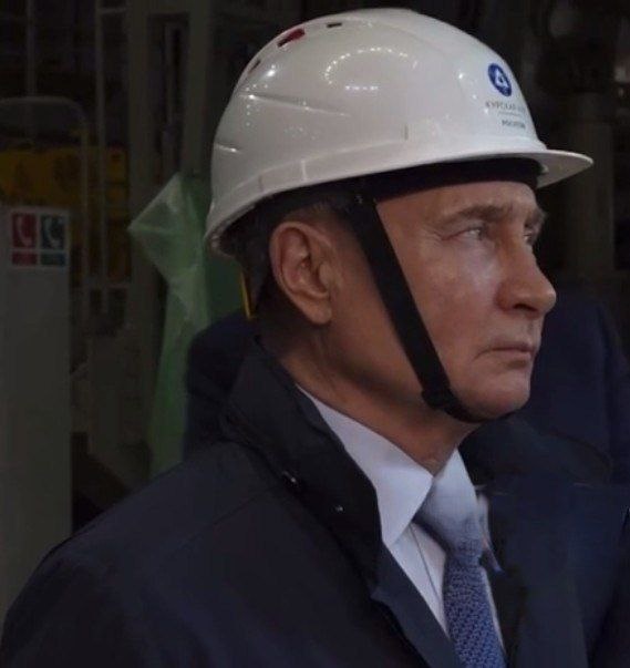 Образ Президента - образ России Путин на стройке в Курчатове, побывал на стройке Курской АЭС-2. Путин в каске, но каска не военная. Перед нами образ строителя, созидателя, образ мирного будущего. Президент России Владимир Путин даёт в очередной раз сигнал Западу. Даёт возможность уйти от конфронтации и прекратить губительное для Европы "перевооружение". Россия хочет мира, как всегда его хотела. Но это не означает, что мы готовы поступиться своими интересами. Каска созидателя может сменится каской водителя, Защитника Родины в любой момент, если с Запада вновь придет агрессия.