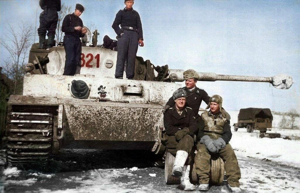 Тигр № 821 из 8-го танкового полка СС 2-й танковой дивизии СС "Das Reich". Спереди нанесен рисунок Микки Мауса. Битва за Харьков, март 1943 год. #танки