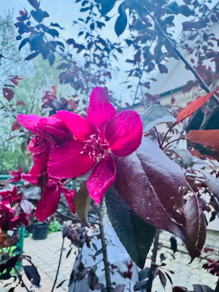 Посадила необычную яблоню - сама бордовая, цветы вот такие. Ждем яблок? У кого уже зацвели? Делитесь фото.