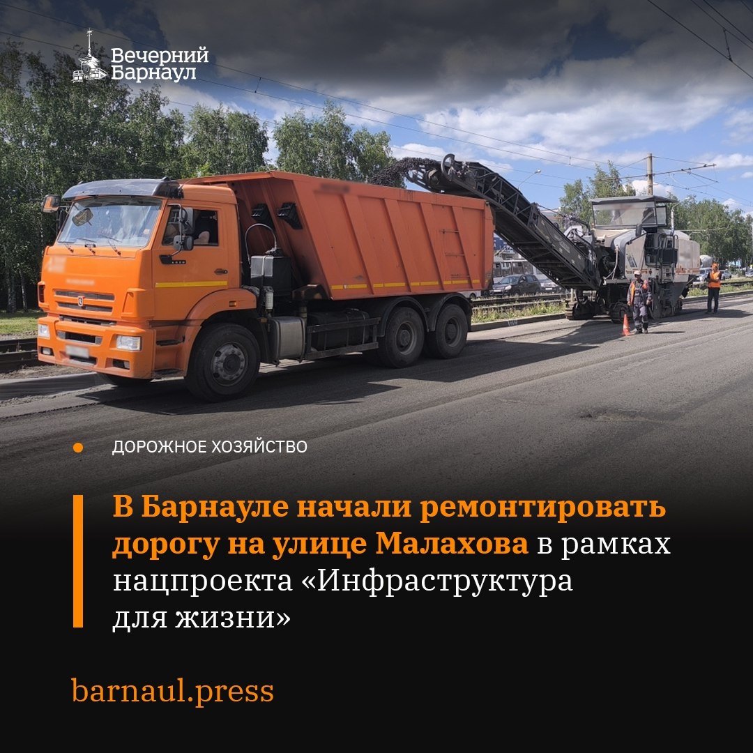 ✅ В Барнауле приступили к ремонту дороги на улице Малахова от улицы Сухэ-Батора до улицы Эмилии Алексеевой. Специалисты восстановят более 26 тысяч квадратных метров асфальтобетонного покрытия, в том числе на основной проезжей части, на переездах трамвайных путей, на примыканиях и парковках. Также они нанесут разметку, заменят покрытие на автобусных остановках, а также дорожные знаки и пешеходное ограждение. 📌 В течение дорожно-строительного сезона в Барнауле планируется выполнить работы на 14 участках: на улицах Чернышевского, Меланжевой, в переулке Кауфмана и на Павловском тракте. Фото: barnaul.org @barnaul