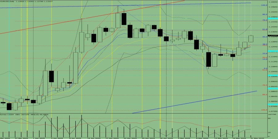 https://basechop.ru/wordpress/?p=43460 Трендовый анализ (рис. 1). В среду рынок от уровня 1.1282 (закрытие вчерашней дневной свечи) может продолжить движение вверх с целью 1.1379 – откатный уровень 61.8% (синяя пунктирная линия). При тестировании этого уровня возможно откатное движение цены вниз с целью 1.1318 – откатный уровень 50% (синяя пунктирная линия). Рис. 1 (дневной график). Комплексный анализ: – индикаторный анализ – вверх; – уровни Фибоначчи – вверх; – объёмы – вверх; – свечной анализ – вниз; – трендовый анализ – вверх; – линии Боллинджера – вверх; – недельный график вверх. Общий вывод: восходящая тенденция. Альтернативный сценарий: цена от уровня 1.1282 (закрытие вчерашней дневной свечи) может продолжить движение вверх с целью 1.1379 – откатный уровень 61.8% (синяя пунктирная линия). При тестировании этого уровня возможно движение цены вверх с целью 1.1453 – откатный уровень 76.4% (синяя пунктирная линия). Материал предоставлен компанией InstaForex – www.instaforex