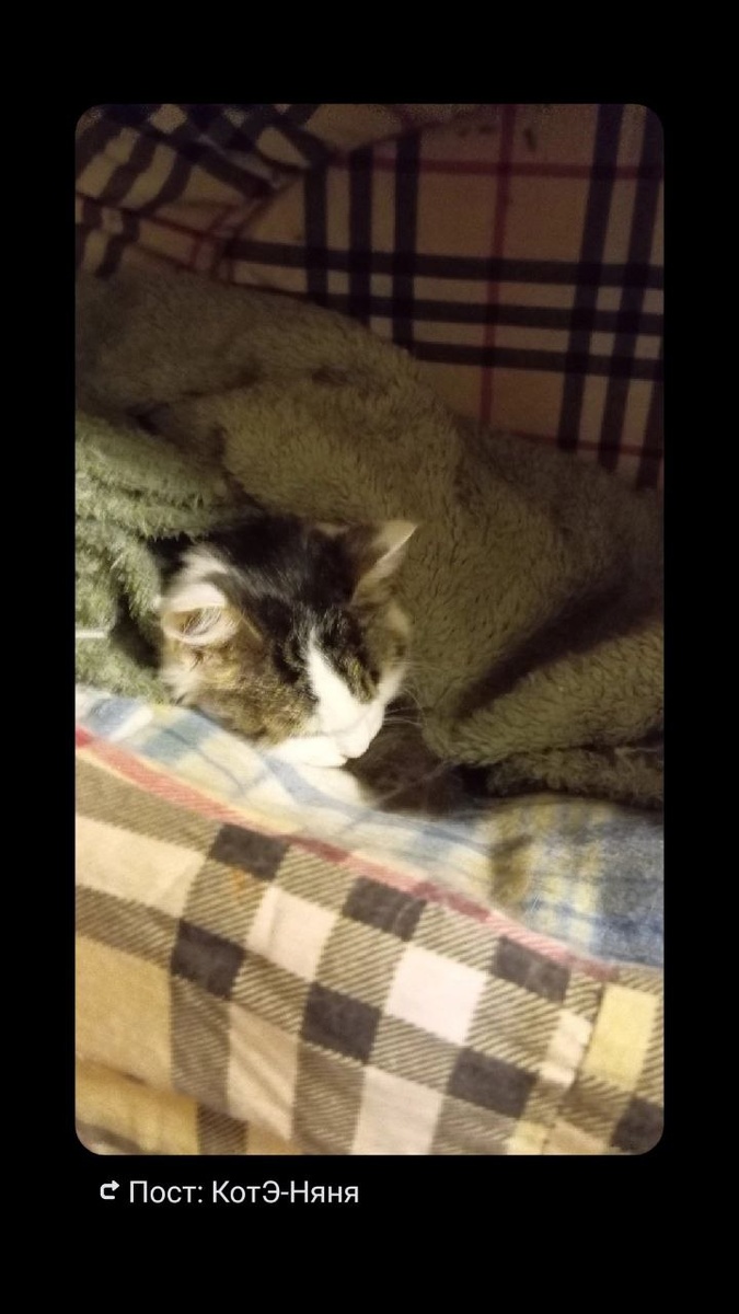 Уютно безмятежно вытянувшись под пледом, сложив свои ласковые лапки. Я ушла от нее в три часа. Она дождалась пока в шесть зазвенит будильник, чтобы попрощаться и ушла. Так и оставшись безмятежно спать.