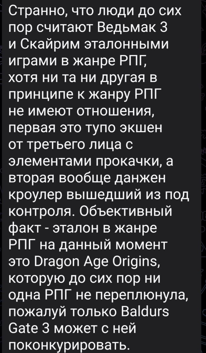 Странный флешмоб нынче у людей. В целом не вижу причин не считать ведьмак 3 РПГ. Я в целом против подхода создания своего перса в играх вместо уже прописанного и вписанного. Сразу появляется множество проблем а как вписать персонажа в общую историю. Обезличить его или сделать все каноном. Привет фалаут и тес. Словно бы игроки в меньшей степени заинтересованы в его судьбе так как это очередь великий ноунейм, который пропадет в истории мира. Тот же Шепард и Геральт куда больше заставляют выливаться в историю. Ваше мнение ?