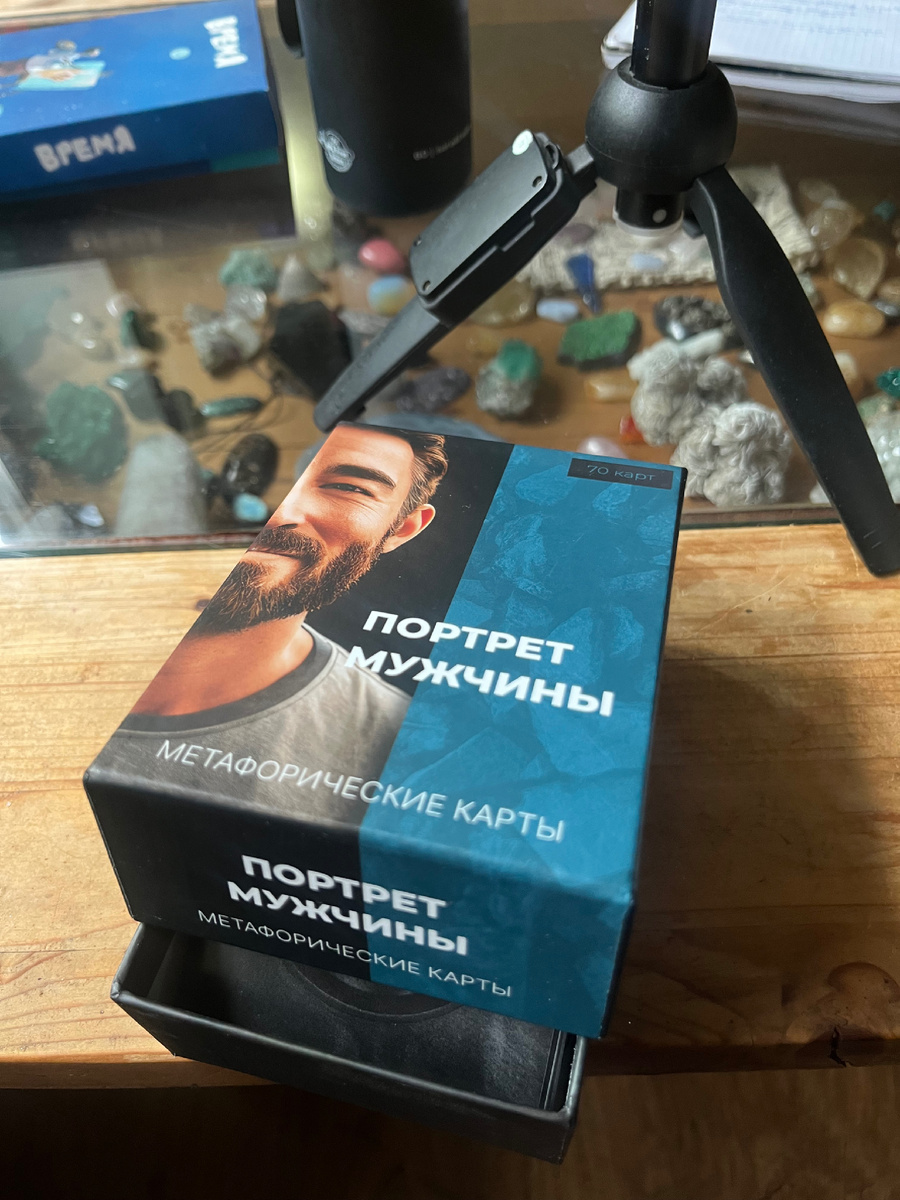 Так что, когда я увидела где-то в случайном блоге обзор на колоду метафорических карт «Портрет мужчины», я ее купила под влиянием импульса. Потом решила отказаться, но Василиса случайно забрала колоду с Вайлдберриз.