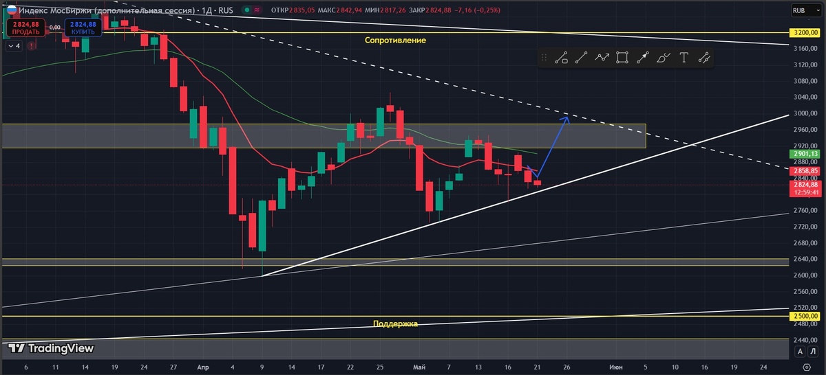 Что можно сказать по рынку. В общем-то всё идет по плану. Торгуемся на поддержке сужения диапазона. По акциям всё в шортовой зоне, за исключением 1-2 позиций. Динамика нисходящая идет. И несмотря на то, что мы находимся у поддержки, покупать такой рынок категорически нельзя. Чтобы мне работать от лонга от поддержки в сужении диапазона, надо очень позитивные новости услышать и увидеть покупателя всего рынка. Только тогда я без какой либо стратегии могу взять рынок на часть депозита. Но основную часть всё равно буду держать для отработки сделок по стратегии. Пока возможности работать от лонга нет. Скорее шорт актуальнее. Я держу шорт позицию по акции, а по валюте в лонгах. Не является индивидуальной инвестиционной рекомендацией.