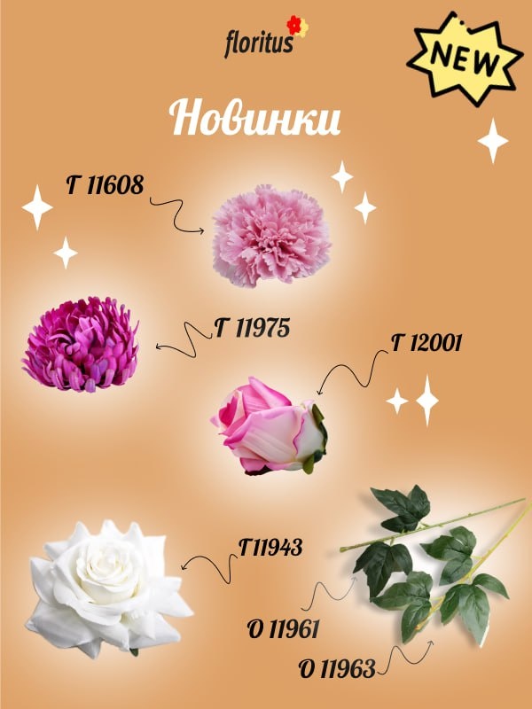 🛍 Н О В И Н К И 🛍 Дорогие друзья, У нас — отличное пополнение для тех, кто собирает букеты и композиции своими руками! Новые головы цветов и ножки — яркие, объёмные, дизайнерские. Всё, как вы любите 💚 💐 Головы цветов ✨ Г11975 Хризантема "Латина" — пушистая, как облачко! Диаметр — 13 см, в упаковке 20 шт. 🌹 Г11943 Премиальная роза "Аве Мария" — нежная, глубокая, роскошная — 15 см диаметром. 🌸 Г11608 Гвоздика дизайнерская — крупная, фактурная, 12 см — очень эффектно смотрится в любой композиции! 🌹 Г12001 Бутон "Царский большой" — тот самый классический бутон розы, плотный и выразительный, диаметр — 9 см. 🌿 Универсальные ножки 🌿 О11961 — с декоративными «дорогими» листьями, длина 48 см. 🌿 О11963 — три выразительных листа, длина 58 см. Идеально подходят для сборки букетов! Переходите на сайт — кликайте на АРТИКУЛ, чтобы рассмотреть всё поближе и заказать новинки 🌿