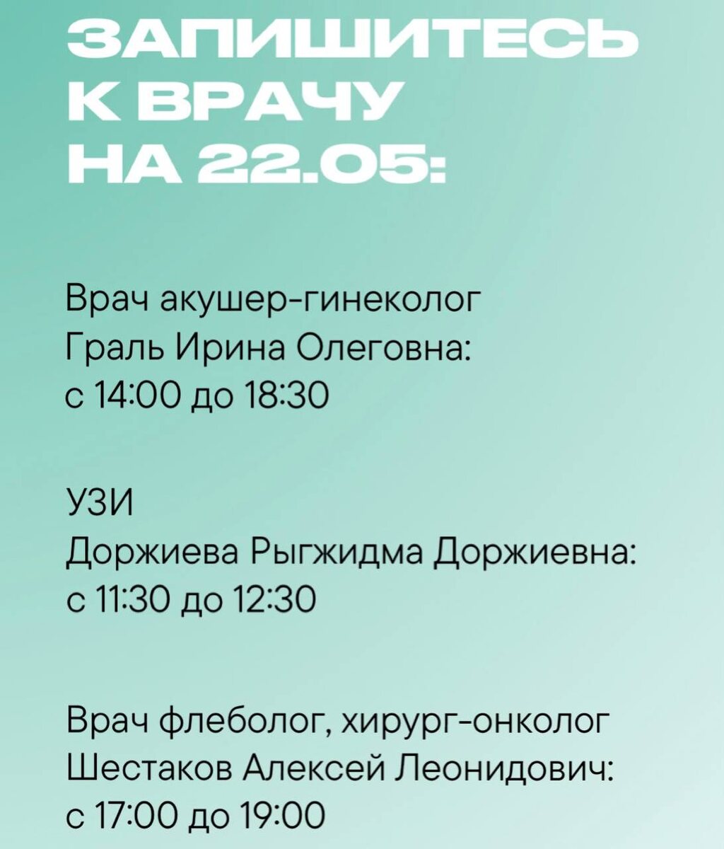 Самое время позаботиться о своем здоровье 🤩 Расписание врачей на завтрашний день и важное напоминание для вас: Процедурный кабинет работает с понедельника по субботу с 09:00 до 13:00 ❗ Вы можете сдать у нас анализы и получить больничный лист.