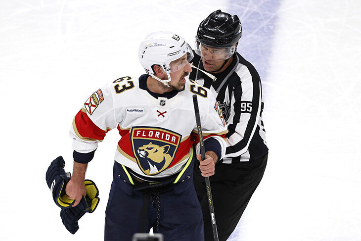 Разумеется, закончилось дракой. 37-летний Брэд Маршанд – один из самых ненавидимых игроков в современной НХЛ и один из главных болтунов на льду. Прозвище «крыса» вам о чем-нибудь говорит? А еще Брэд Маршанд – легенда «Бостона», обладатель Кубка Стэнли и лучший бомбардир «Флориды» после двух раундов плей-офф-2025. Не Барков, не Ткачак, а выменянный на дедлайне Маршанд. В общем, у игроков «Каролины» было много причин действовать против него жестко. Другой момент – что это обычно не помогает, потому что Брэд просто ответит тем же (иногда еще и с удвоенной яростью). Но все же выбесить его можно. Новый способ в первом матче серии открыл защитник «Харрикейнс» Шейн Гостисбеер. Выходя из зоны, прямо на своей синей, он сильно метнул шайбу в Маршанда, который несколькими секундами ранее хотел применить против него силовой прием. Само собой, все закончилось дракой. Сложно назвать это случайностью или предположить, что защитник хотел так начать атаку – с повторов заметно, что видел соперника. Да о
