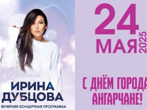 В пятницу, 24 мая, Ангарск отметит свой день рождения. В честь праздника для жителей города выступит певица Ирина Дубцова. Она исполнит свои самые популярные песни, такие как «О нём», «Люби меня долго-долго» и «Москва — Нева». Концерт начнётся в 19:00.