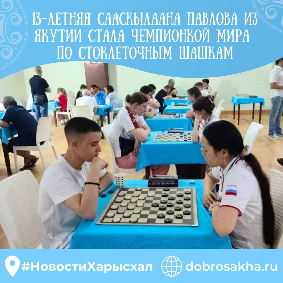 🎉 13-летняя Сааскылаана Павлова из Якутии стала чемпионкой мира по стоклеточным шашкам среди юниоров до 23 лет среди спортсменов с