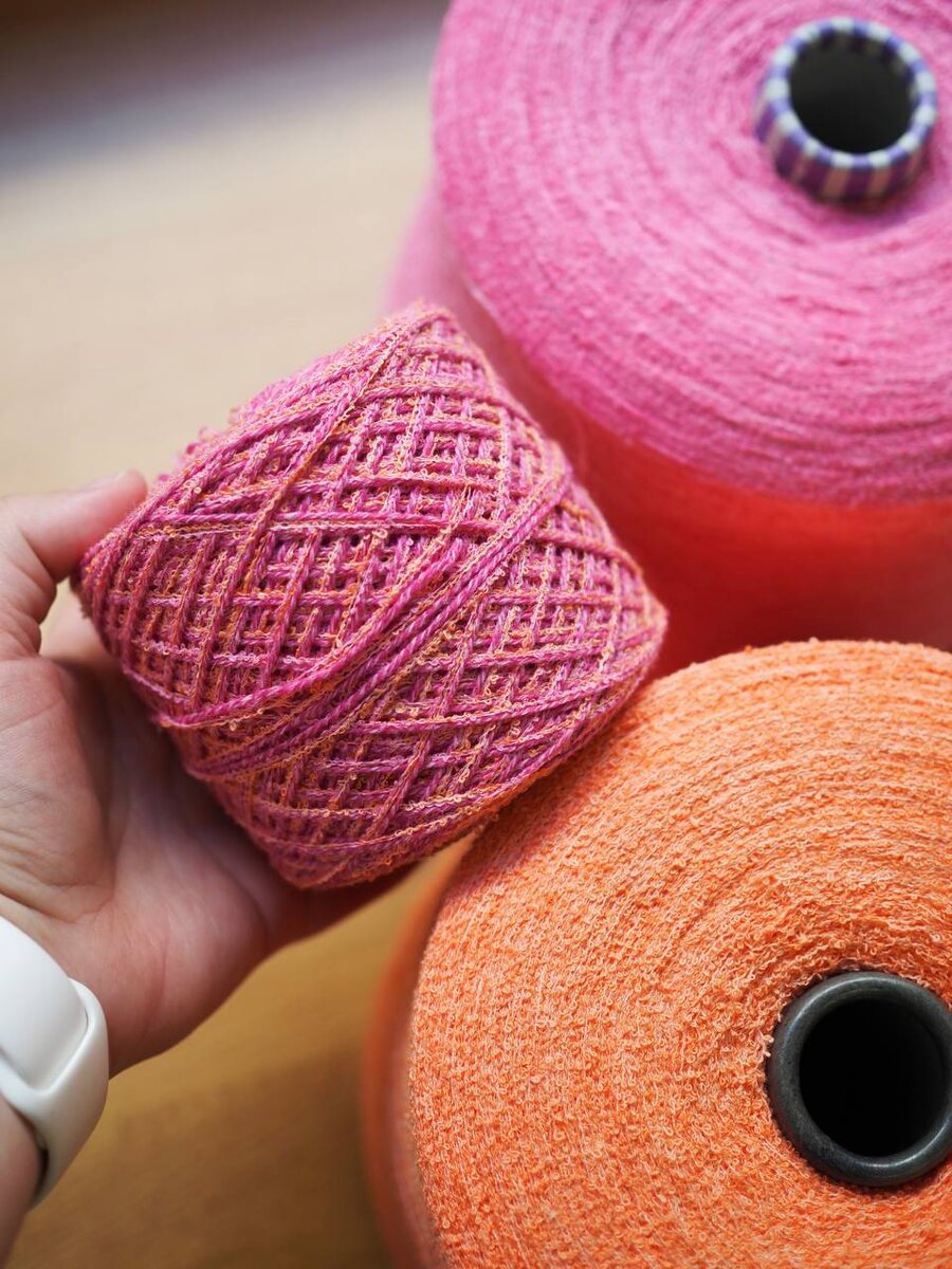 Так вот, есть у меня хлопковая носочка, к которой не могла никак подобрать проект, тонкая очень. И по цвету к ней из букле добавила ярко-розовый и… оранжевый (просто шок-контент для меня 🤣 я оранжевый так-то не жалую). И вместе они заиграли!! Просто посмотрите 😍