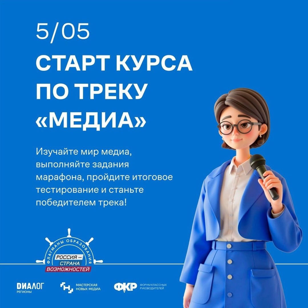 Как учить в эпоху клипов, мемов и цифрового мышления? 🌐 Проект «Флагманы образования» президентской платформы «Россия – страна возможностей» совместно с АНО «Диалог Регионы» и Форумом классных руководителей запустили онлайн-курс по медиакомпетенциям педагога. 👉🏻 Что вас ждет: • 7 блоков — от личного бренда и медиаграмотности до работы со стрессом и создания контента; • Видеоуроки, статьи, мастер-классы и реальные практические задания; • Сертификат после окончания обучения. Обучение идет на платформе «Диалог Про», доступ открывается сразу после регистрации! 📍Станьте лучшим из лучших в мире медиа уже сейчас, зарегистрировавшись на сайте проекта. #ФлагманыОбразования