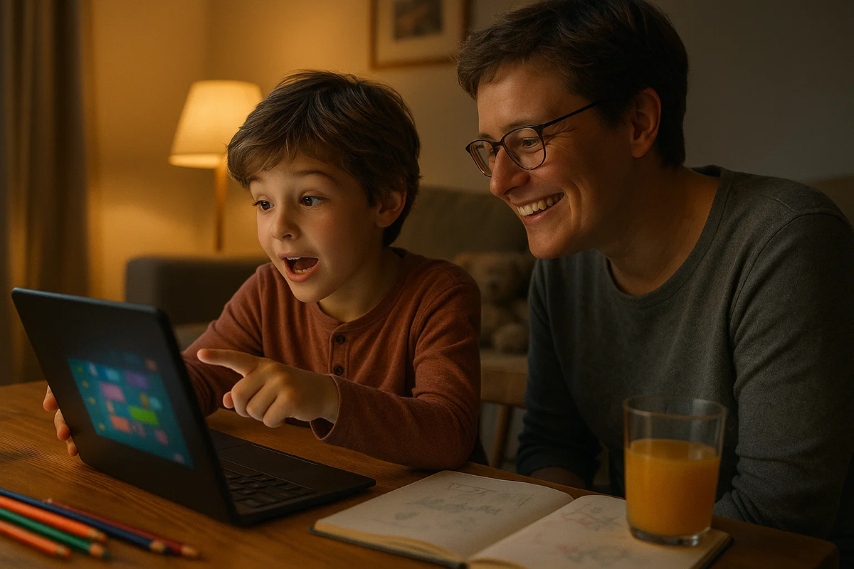 🎬 Представим сцену: родитель стоит перед полкой. Курс 1 — «500 заданий по математике». Курс 2 — «Истории, которые заставляют детей полюбить числа». Угадаешь, к какому потянется рука?