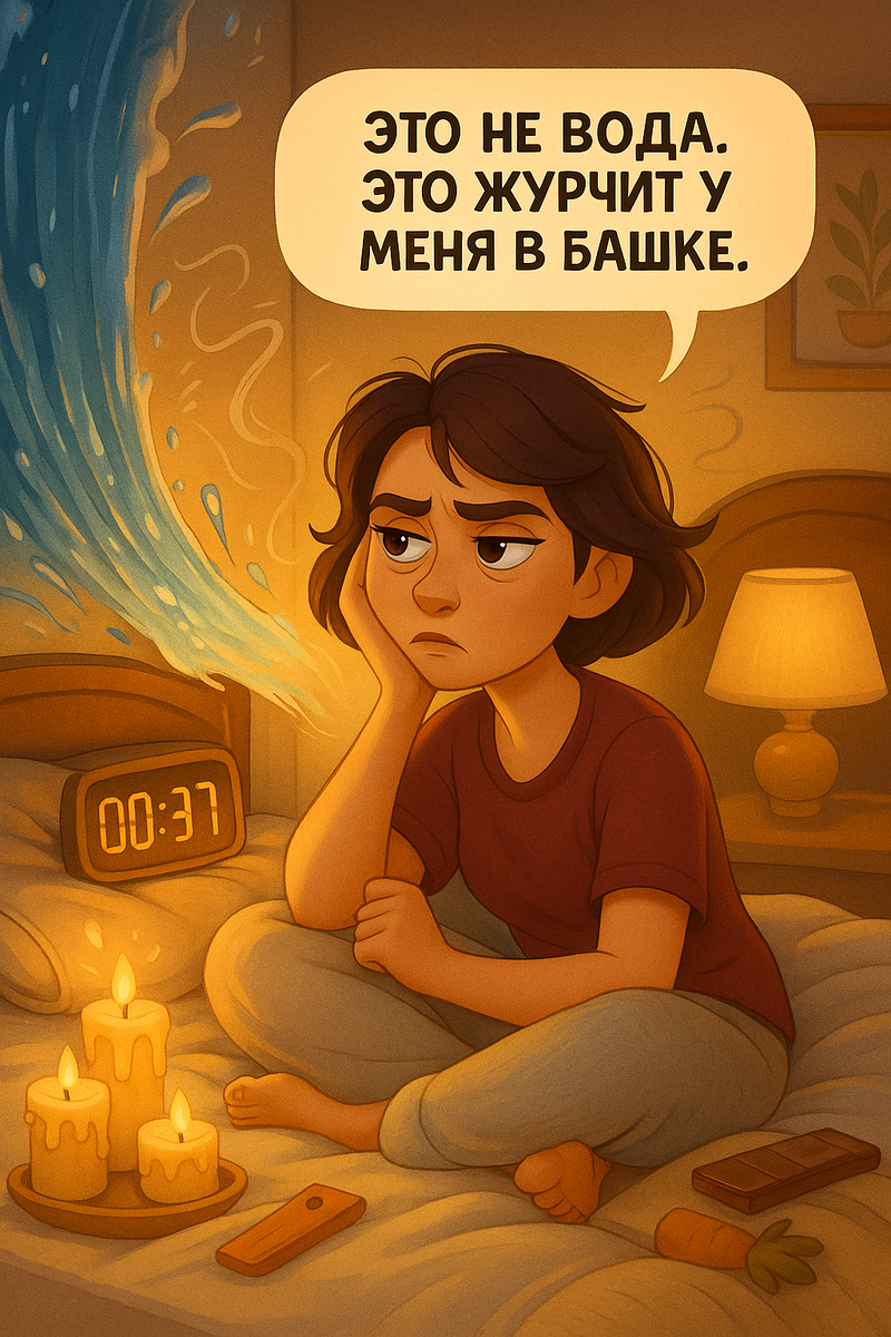 00:37. Я лежу в кровати, вроде бы спать пора. Муж спит. Дом спит. ⠀ А ВАННА У СОСЕДЕЙ НЕТ. И я нет.⠀ Слышно, как будто они запустили аквапарк через стенку. Поток. Журчание. Водопады. Ниагара, блять... ⠀ Я не сплю. Я лежу и держусь из последних моральных сил. Потому что это не просто звук воды. ⠀ Это — капля, которая падает на фон уже кипящего напряжения. ⠀ Вот краткий список последней недели, откуда сие напряжение взялось: — У первоклашки конец года. Последние задания, сборы, фраза "мам, я не пойду". — У старшей — выпускной. Фото, платья, чаепития, подарки. — А я в родкоме. Да-да. Я. В родкоме. В двух. — Работа. Клиенты. Группы. Жизнь. Эфиры. Маркетолог, который напоминает тебе о том, что надо делать. — Тело. Пиявки, усталость, спина, живот, всё это не по плану. — Дом. Коты, еда, уборка, а ещё кто-то орёт из-за в чатах вотсапа про внезапно заработавшие батареи, и это не я. И вишенка на торте: журчание воды. В час ночи. В спальне. ⠀ Ну как бы да, хаха, “смешно”.⠀ Но по факту — моя