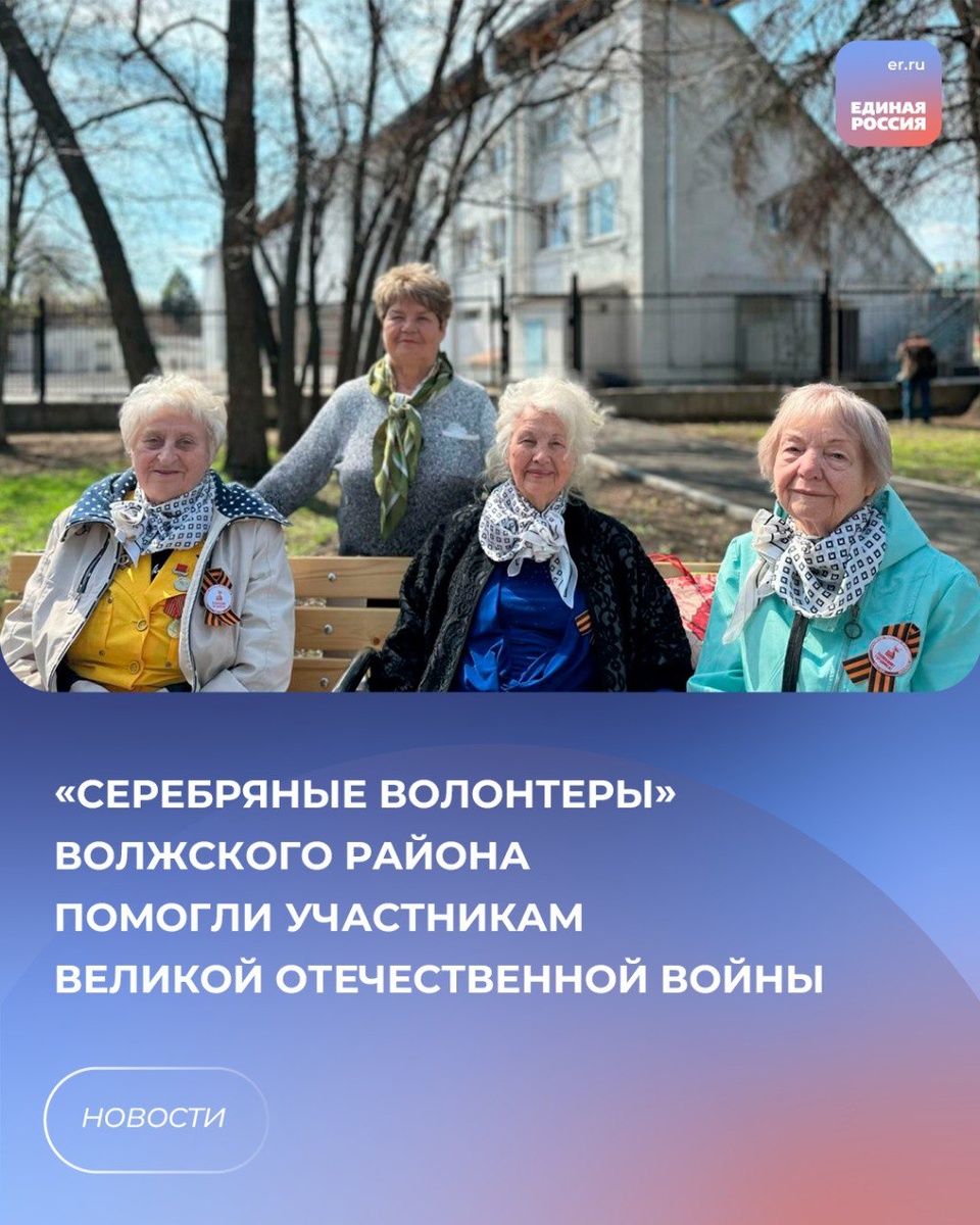 ✅«Серебряные волонтеры» Волжского района навестили участников Великой Отечественной войны и помогли провести уборку в квартирах. Участнику Великой отечественной войны Николаю Ивановичу Сокову 102 года и конечно в силу своего почтенного возраста, многие из домашних дел ему уже непосильны. Ровно, как и Вере Сергеевне Логиновой, которой в августе исполнится 99 лет. Местным координатором проекта «Старшее поколение» партии «Единая Россия» в Волжском районе Ириной Кочетковой было принято решение помочь ветеранам и организовать у них дома уборку. 💬«Порядок наведен и наши ветераны были готовы к встрече гостей. Спасибо всем волонтёрам, кто откликнулся на просьбу о помощи. Несомненно, самые главные слова благодарности нашим дорогим и уважаемым ветеранам! Долгих лет жизни в добром здравии, теплоты родных и близких, добра и благополучия всем нашим героям, которые 80 лет назад разгромили фашистских захватчиков и одержали Великую Победу», - подчеркнула Ирина Кочеткова.