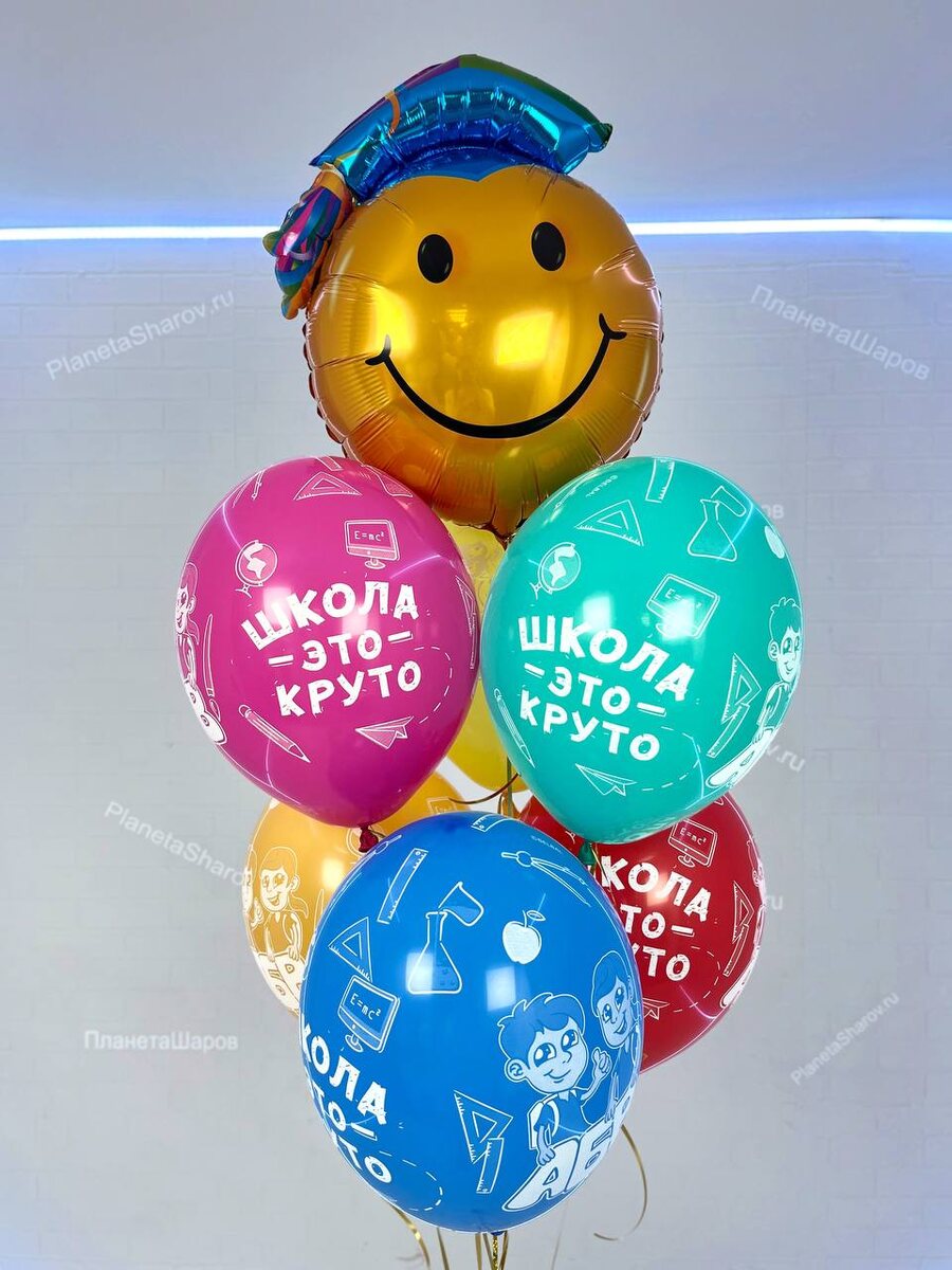Заказать: https://planetasharov.ru/shop/fontany-iz-gelievyx-sharov/shary-shkola-eto-kruto/