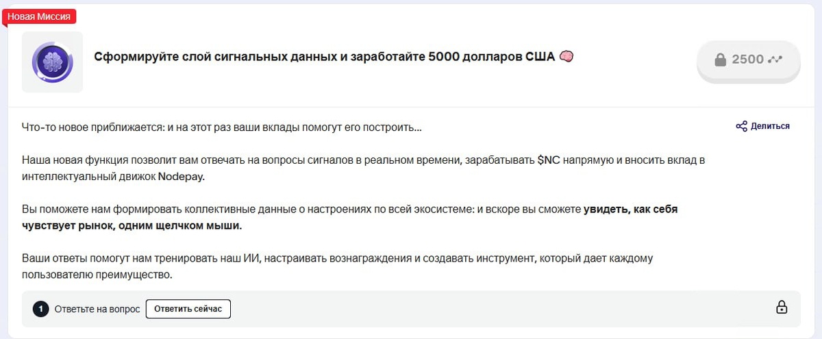 #NodePay 🌟 NodePay запускает новый опросный квест с призовым фондом $5,000 в токенах $NC. 🙂 Условия участия: ✅Заполните опрос и получите 2,500 баллов. ✅Будьте среди 100 победителей, которые разделят призовой фонд. ✅ Обязательно наличие медали Proof of Humanhood. 🕖 Спешите участвовать – количество мест ограничено! 🤑 Принять участие