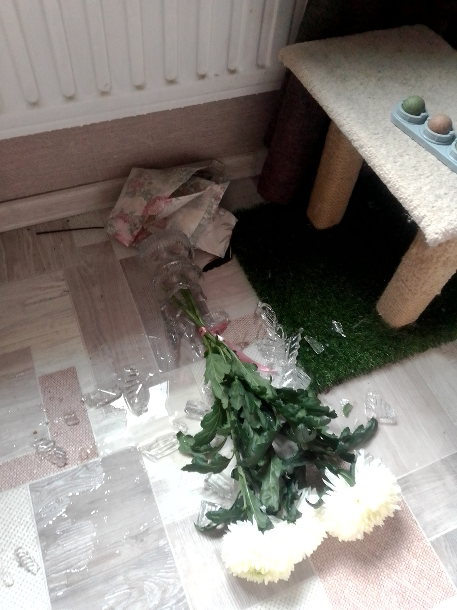 Утро выходного началось с того, что Дуся свалила с подоконника большую хрустальную вазу и ушибла лапу. Весь день хромала. Думали уже вести ее в ветеринарную клинику на рентген.