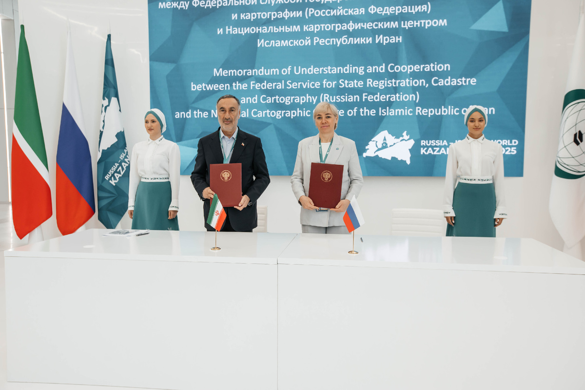 В Казани, на полях XVI Международного экономического форума «Россия – Исламский мир: KazanForum», Росреестр подписал меморандум о взаимопонимании и сотрудничестве с Национальным картографическим центром Исламской Республики Иран (НКЦИ). Подписи под документом поставили заместитель руководителя Росреестра Татьяна Громова и генеральный директор НКЦИ Сейед Эскандар Сейдайи. В рамках меморандума планируется двустороннее взаимодействие в сфере геодезии и картографии, геоинформационных технологий и создания электронных сервисов, а также в области наименования географических объектов.