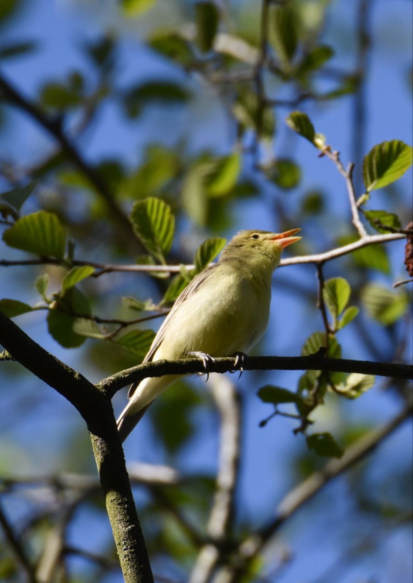 У меня опять повторяется история, когда Мерлин за мной не поспевает. Вчера была найдена первая зелёная пересмешка в этом году, а сегодня это у меня птица дня... 🤷♀😁 ну что ж, несу вам вчерашнюю птичку. Обычно я за ними хожу в ближайший парк, просто за годы бёрдинга я знаю, в каких кустах они там поют. А этого товарища мы встретили около шоссе в Тарховке. Как услышали его сквозь шум машин - не понятно, но услышали. А вот увидеть уже было сложнее: они сидят обычно высоко, окрас у них вполне маскировочный. И если птичка не дёрнется, то найти её довольно сложно. Наша слетела в низенькие кусты, к луже, видимо, горло промочить. Потом поднялся опять на высокие ветки и завёл свою песенку заново... 😁