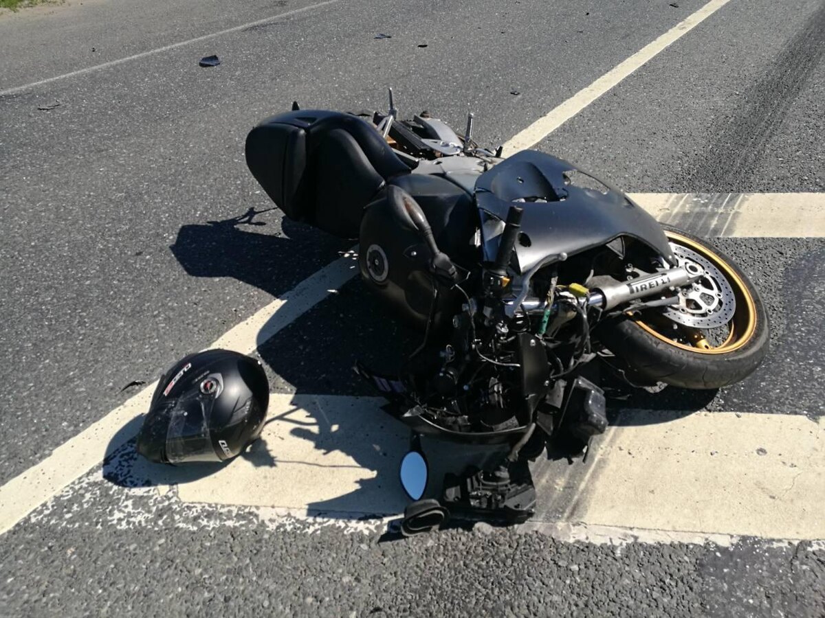 Сегодня днем на федеральной трассе рядом с поселком Зубова Щель мотоциклист выехал на встречку и столкнулся с грузовиком «Газель».