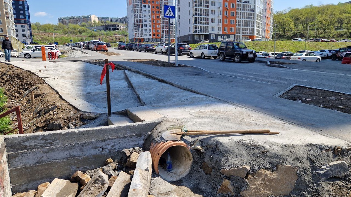 На Сочинской 15 завершаются работы по созданию дорожки от лестницы до тротуара и по отведению ливневого стока с соседнего дома Североморская 1, где он почему-то не был предусмотрен застройщиком.