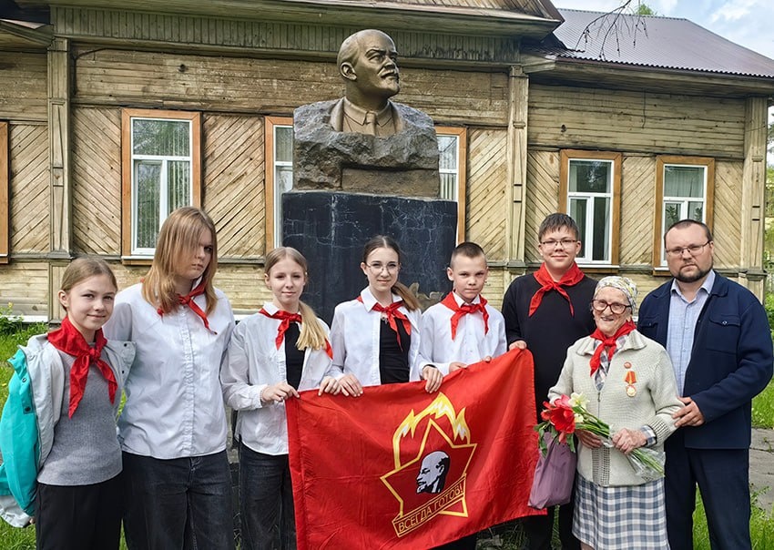 Перед началом поездки юные пионеры общеобразовательной школы №6, вместе с первым секретарём Кинешемского горкома КПРФ Владимиром Любимовым, поздравили с днем рождения (19 мая) ветерана микрорайона «Электроконтакт» Ильину Людмилу Константиновну, вручив памятную медаль КПРФ «80 лет Великой Победе».