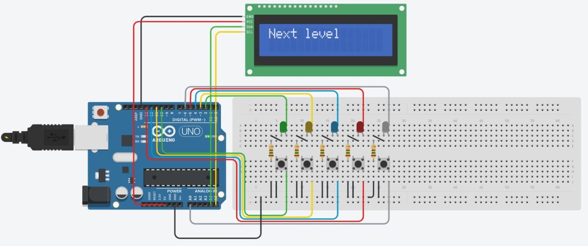 👾💡 Arduino-игра «Запомни порядок» — учимся через приключения! 🛠🎓 Привет, друзья! 🙌 Хочу поделиться с вами милым проектом, который собрал в TinkerCad. После небольшой доработки (нужно лишь поменять адрес дисплея) его легко перенести и на обычную макетную плату. 📜 Суть игры 🔆 Запомните порядок, в котором загораются светодиоды. ⌨️ Повторите последовательность, нажимая соответствующие кнопки. 🚀 Продвигайтесь по уровням, пока ваша память не скажет "ВСЁ"! 🎯 Чем полезен проект? ✨ Научитесь мигать светодиодами. 🤖 Чтение кнопок — считываем нажатия без дребезга. 📟 LCD-дисплей — выводим подсказки и счёт. 🧠 Логика игры — тренировка условий, массивов и таймеров. Вот ссылка на проект: ➡️ https://www.tinkercad.com/things/1zf3rWy3Otk-igra-zapomni-poryadok Это одна из многих возможных игр на Arduino: Про остальные можете найти сведения в предыдущих постах: Игра "11 светодиодов": ➡️ https://t.me/burmistrov_robotics/82 Игра "Успей нажать": ➡️ https://t.me/burmistrov_robotics/140 🛠 П