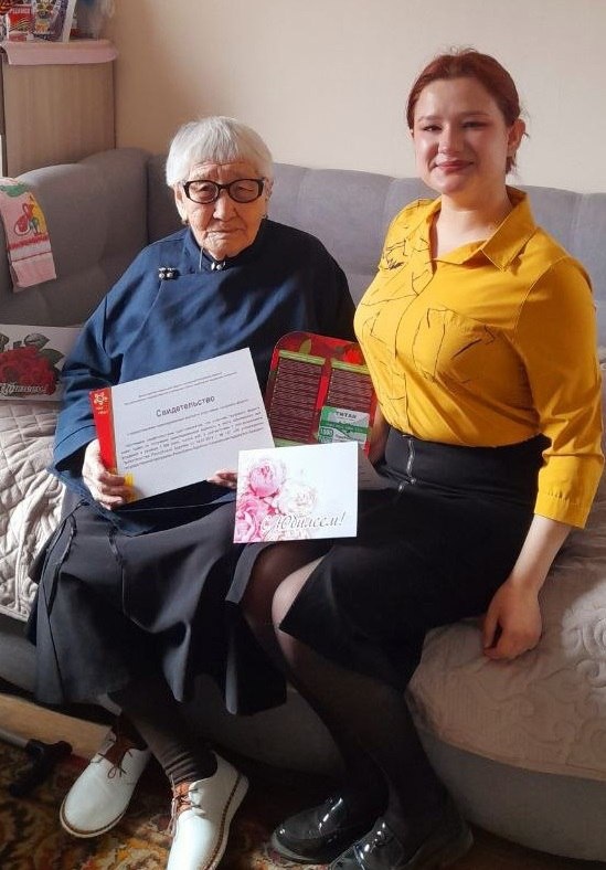 🎉101 год – это не просто возраст, это история целой эпохи! В Заиграевском районе с юбилеем поздравили Анну Балдаевну Шагдурову — труженицу тыла, ветерана труда и настоящего героя своего времени. 20 мая она отметила 101-й день рождения! 🌺 Родом из многодетной семьи улуса Карасун, Анна Балдаевна с детства проявляла удивительное трудолюбие и тягу к знаниям. Не зная русского языка, она с упорством училась, записывая непонятные слова в тетрадь — и вскоре преодолела языковой барьер. В годы войны, когда братья ушли на фронт, юная Анна вместе с сестрой шила тёплые шубы для солдат, вкладывая в карманы письма со словами поддержки: «Скорей Победа!». С супругом они прожили 59 лет, вырастили 6 детей, и сегодня у неё уже 17 внуков, 31 правнук и 9 праправнуков! 💖 🎁 В день рождения сотрудники отдела соцзащиты по Заиграевскому району поздравили юбиляра, вручили открытку от Главы Бурятии, свидетельство о выплате участнику трудового фронта, подарочную карту. #минсоц03 #ветеран03