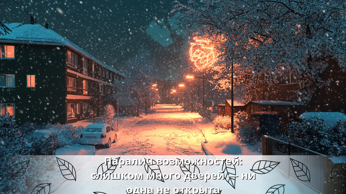 В современном мире нас окружает множество возможностей, дверей, которые открываются перед нами на каждом шагу. Мы живем в эпоху информационного перегруза, когда выбор становится не просто важным, а порой ошеломляющим. Каждый день перед нами встают новые пути: карьера, отношения, хобби, путешествия, финансы… Однако, парадоксально, чем больше дверей мы видим, тем сложнее выбрать ту, которая приведет нас к истинному счастью и успеху. Вместо того, чтобы действовать, мы оказываемся в состоянии «паралича возможностей», когда множество вариантов тормозит решение, а ни одна дверь так и не открывается.