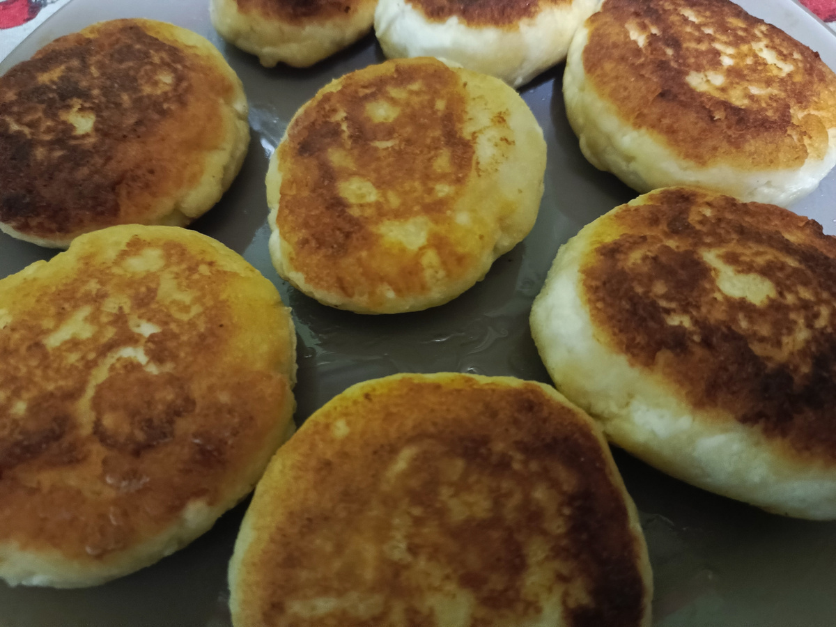 Берем творог, добавляем одно яйцо, второе яйцо разделяем на белок и желток и к творогу добавляем только желток. Далее к тесту добавляем муку, немного манки, ванилин и сахар. Все по вкусу. Сырники жарим на растительном масле.