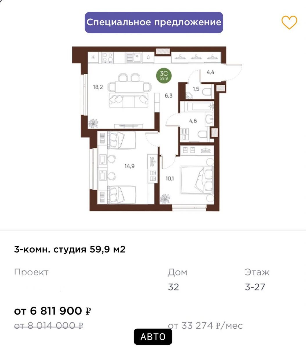 Идеальные трешки студии за 6800 000 около центра! На берегу реки🔥 к 2028 году будет новая школа и сад