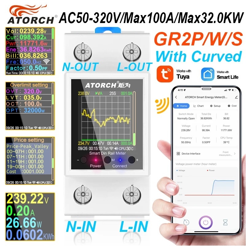 ATORCH GR2PWS. реальная работа в течении трех лет . Продается как многофункциональное реле , и как Счетчик Электроэнергии Устройство продается более трех лет. Отличается от других аналогичных несколькими вариантами отображения информации на экране и графиками на экране и в приложении. Ну и обещанным реалтайм . С ним не все просто. По изменению политики Tuya в 2025 г этот функционал теперь бесплатно обновляет данные раз в 30 секунд. В некоторых старых реле, где сразу переключили движок, обмен идет чаще. В моем экземпляре этот движок не переключается. Функционал через магазин по подписке. Варианты исполнений Мощность рассчитывается по формуле Приложение доступно в исполнении с Wi-Fi Среди множества настроек было обещано два тарифа потребления. И даже четыре тарифа, судя по картинке. Но к сожалению весь этот функционал за дополнительную плату по подписке. Перевод основных терминов приложения. key beep звуковой сигнал клавиши OVP высокий уровень напряжения OCP ток OPP м