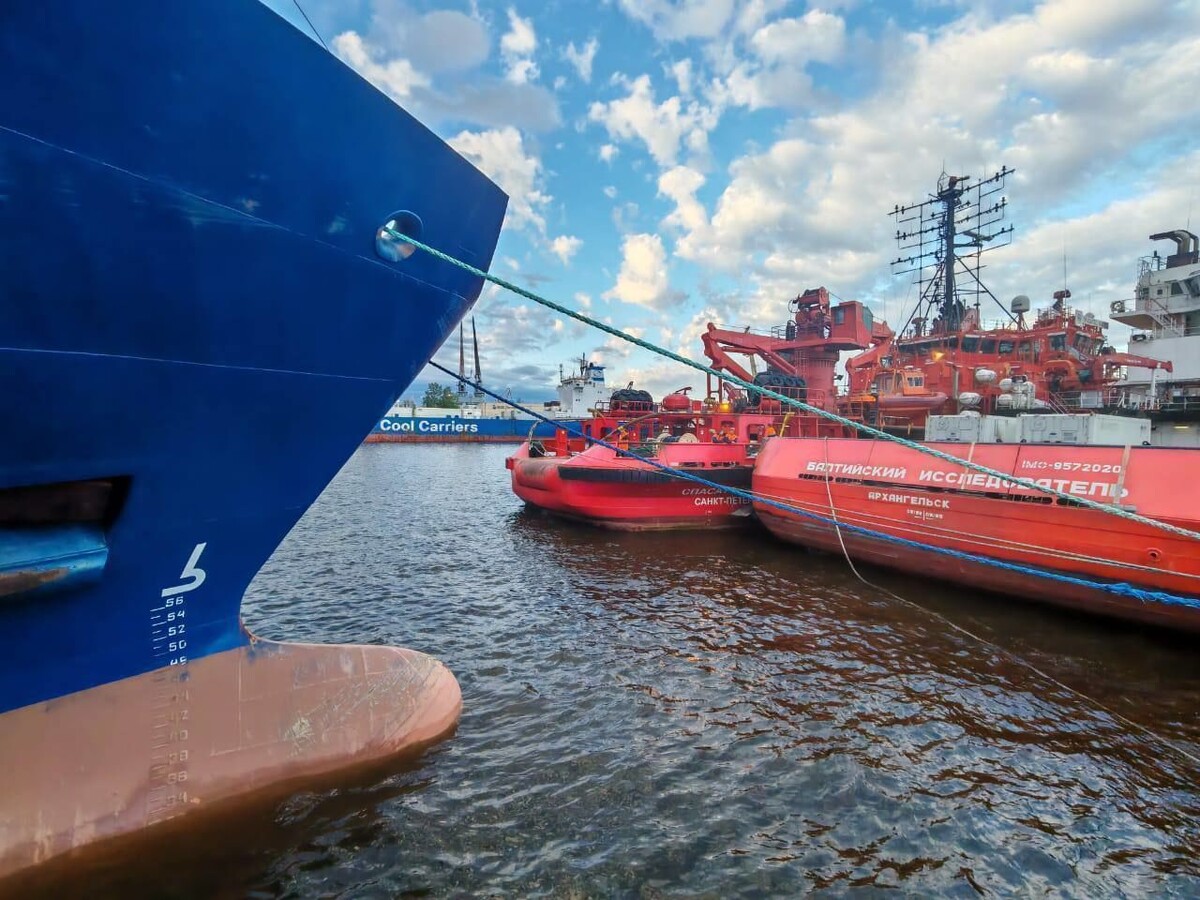 В акватории Невы столкнулись контейнеровоз и судно «Спасатель Карев»